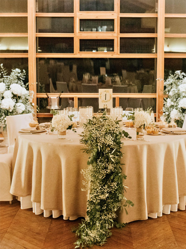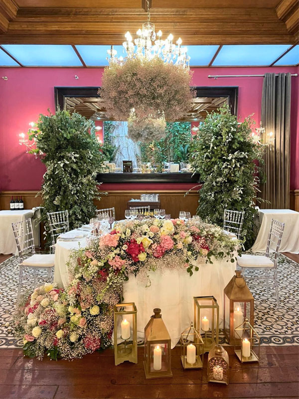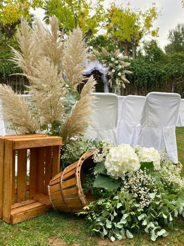 Diseñamos desde la entrada hasta las mesas, cuidando detalles como centros florales, rincones verdes o composiciones con plantas que dan frescura y personalidad al banquete.