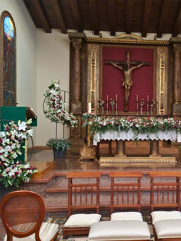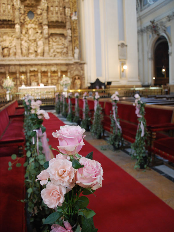 La iglesia es el lugar donde muchos novios dan el gran “sí, quiero”, y merece un entorno a la altura del momento. En Viveros Aznar diseñamos decoración floral para iglesias, desde el altar hasta los bancos y pasillos, creando un ambiente solemne y lleno de belleza natural.
