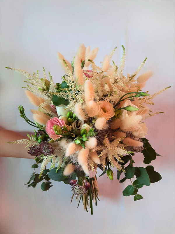 Trabajamos con flores frescas, colores y texturas que encajan con la temática de la boda. Ya sea un ramo romántico, silvestre, elegante o minimalista, lo adaptamos a vuestra personalidad.